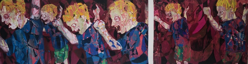 The Dance 0 September 4, 2020 Written by nicoleforan The Dance Linocut and Gouache 59″ x 16″ 2020 Share this: Click to share on X (Opens in new window) X Click to share on Facebook (Opens in new window) Facebook Like Loading... Related