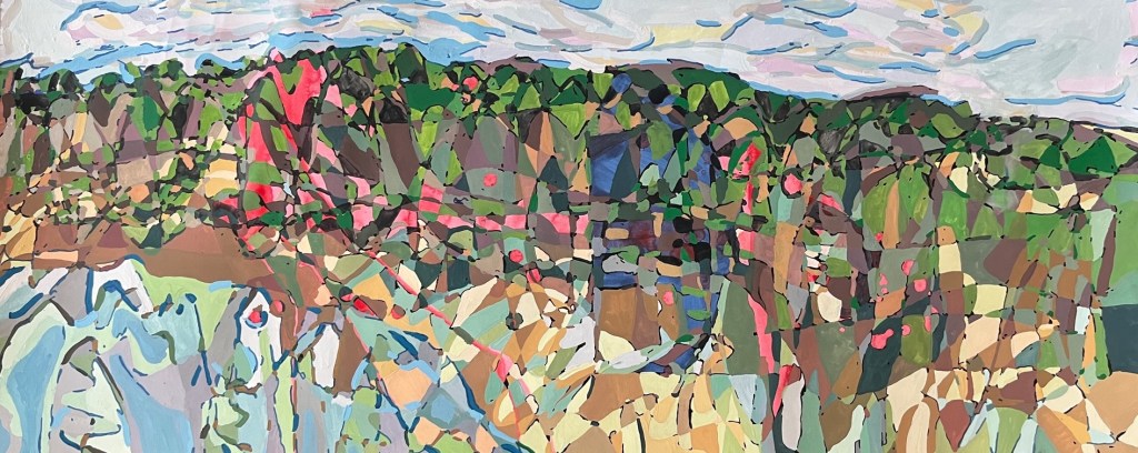 The Ridge (Saskatchewan 2004) 0 September 29, 2023 Written by nicoleforan Gouache, Ink, Acrylic 16″ x 38″ 2023 Share this: Click to share on X (Opens in new window) X Click to share on Facebook (Opens in new window) Facebook Like Loading... Related